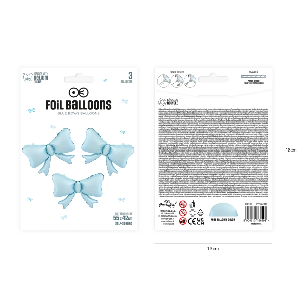 Balony foliowe kokardki niebieskie 55 x 42 cm 3 sztuki 166598