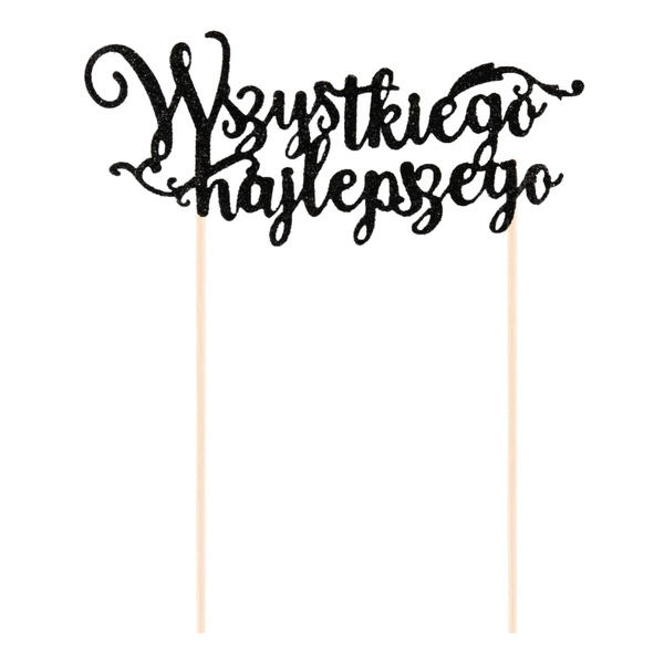 Topper urodzinowy na tort z napisem Wszystkiego najlepszego - czarny brokatowy.