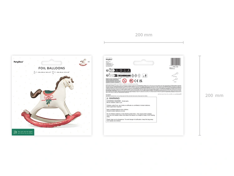 Stojący balon foliowy świąteczny koń na biegunach 118 x 104 cm 1 sztuka FB309
