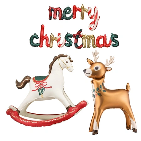 Balony foliowe Merry Christmas renifer koń na biegunach świąteczne zestaw 3 sztuki ZB89