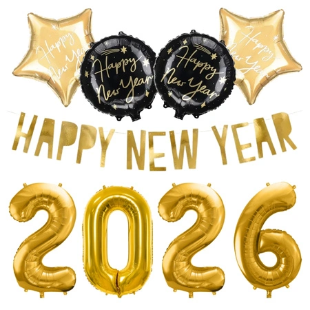 Dekoracje na Sylwestra 2026 balony baner złote czarne zes-SYL21