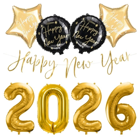 Dekoracje na Sylwestra 2026 balony baner złote czarne zes-SYL22