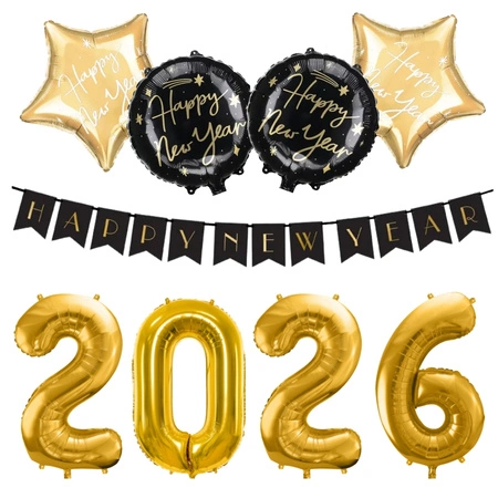 Dekoracje na Sylwestra 2026 balony baner złote czarne zes-SYL23