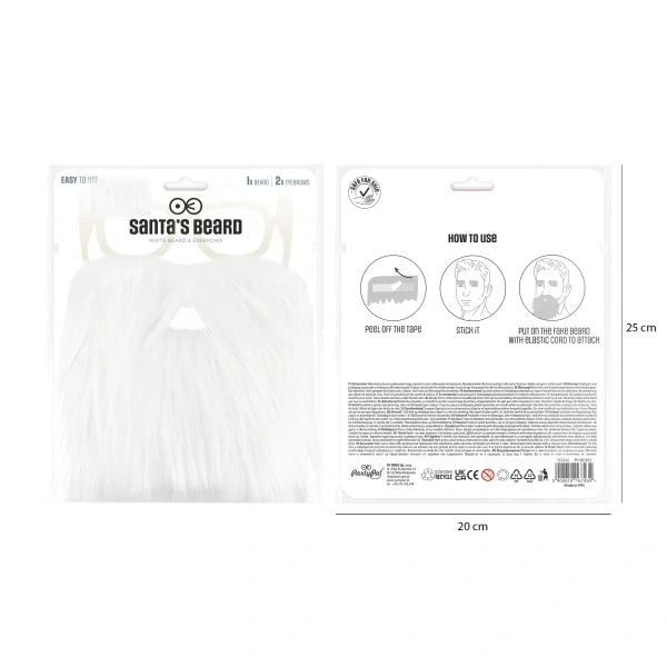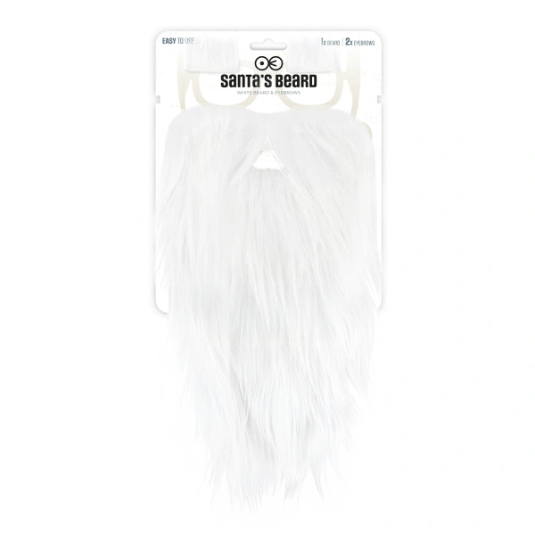 Sztuczna broda i brwi Mikołaja, białe, samoprzylepne.