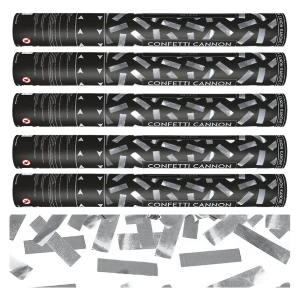 Tuby strzelające srebrne konfetti 40cm 5 sztuk TUKM40-018-5x