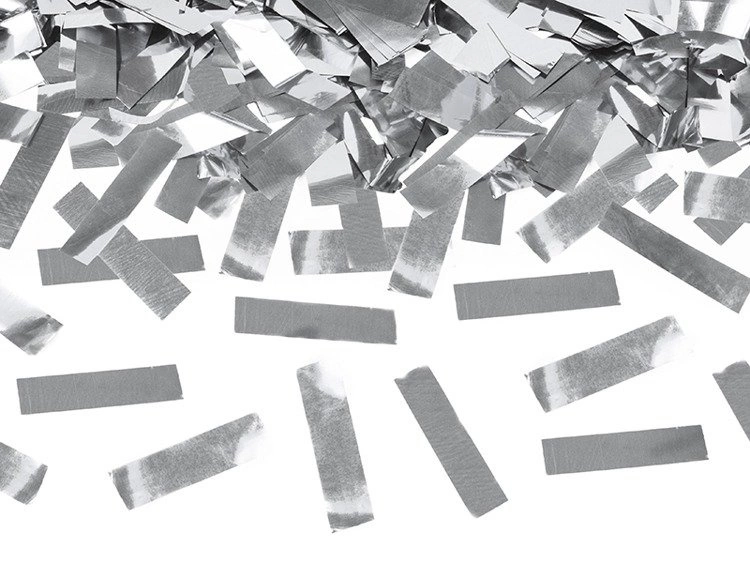 Tuby strzelające metalicznym konfetti w kolorze srebrnym.