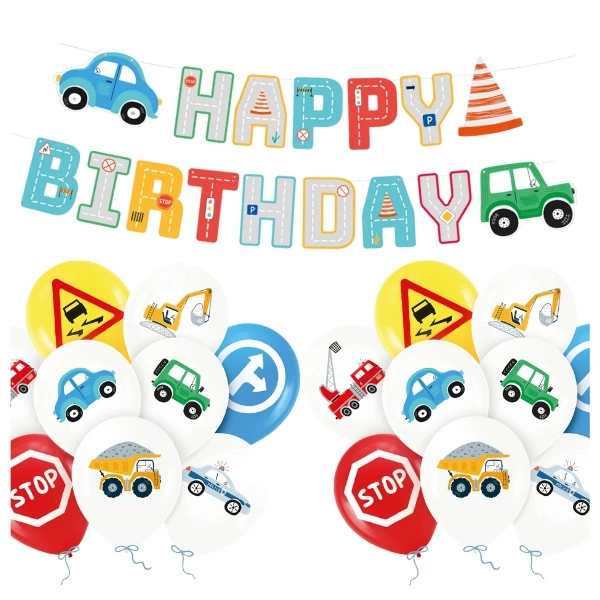 Balony na 9 urodziny Pojazdy Budowa baner Happy Birthday zestaw zes-AUTO22