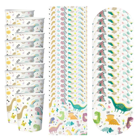 Kubeczki talerzyki serwetki papierowe Dinozaury urodziny zestaw dla 12 osób zes-DINO18