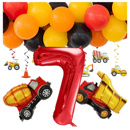 Zestaw na 7 urodziny balony budowa betoniarka wywrotka zes-BUD17
