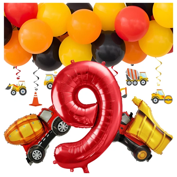 Zestaw na 9 urodziny balony budowa betoniarka wywrotka zes-BUD19