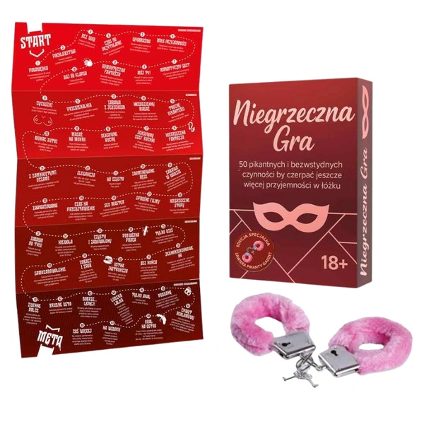 Gra zawiera gadżet dla par - kajdanki z futerkiem - dla uatrakcyjnienia wspólnych zabaw.