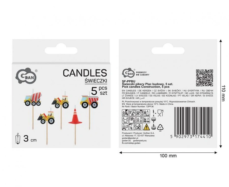 Świeczki na tort Budowa pojazdy urodziny urodzinowe koparka wywrotka betoniarka 5 sztuk SF-PPBU