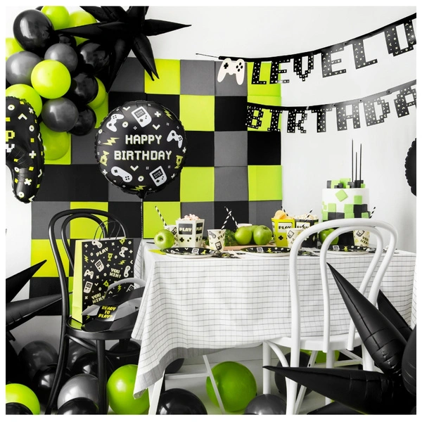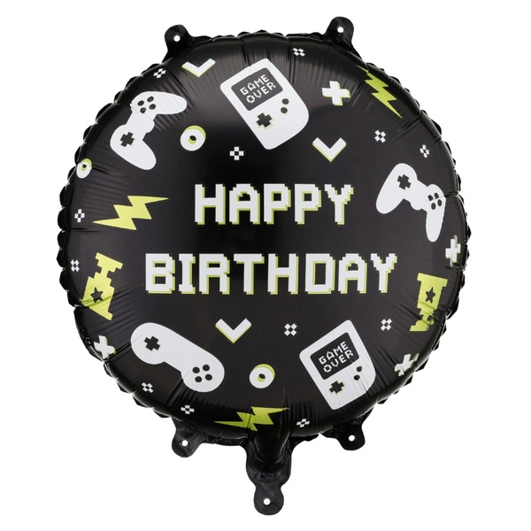 Balon foliowy pastylka pady do gier z napisem Happy Birthday.