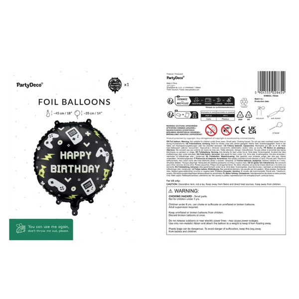 Balon foliowy pady do gier z napisem Happy Birthday pastylka okrągły 35 cm 1 sztuka FB344