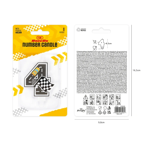 Świeczka urodzinowa na tort cyfra 4, model z kolekcji Wyścigówki.