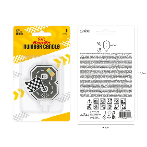 Świeczka urodzinowa na tort cyfra 8, model z kolekcji Wyścigówki.