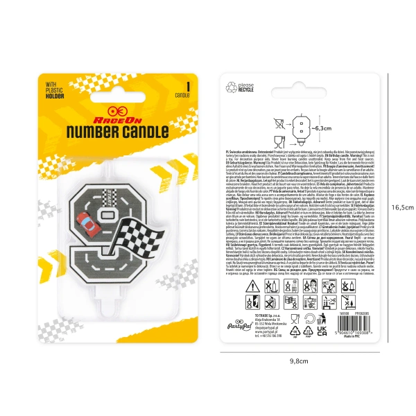 Świeczka urodzinowa na tort cyfra 9, model z kolekcji Wyścigówki.