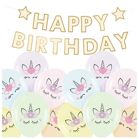 Dekoracje urodzinowe Jednorożce baner balony zestaw zes-JED13