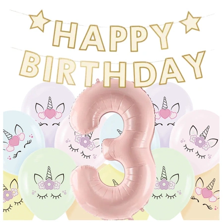 Dekoracje na 3 urodziny Jednorożce baner balony zestaw zes-JED16