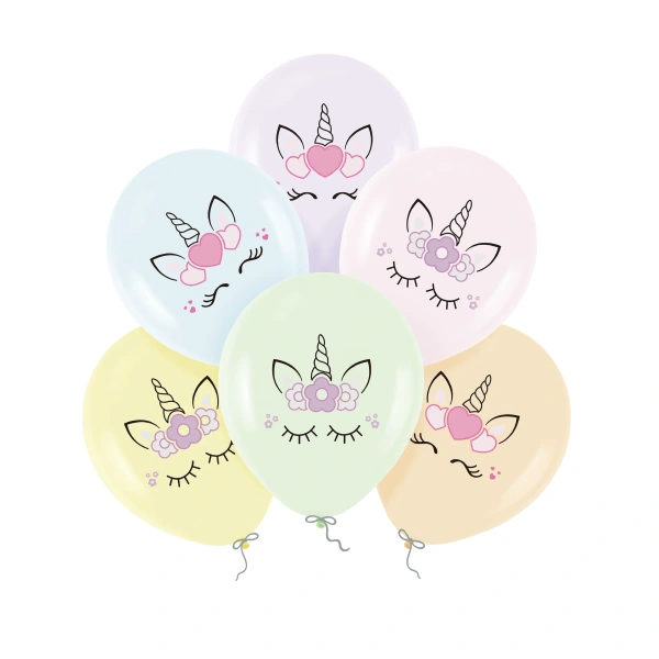 - 12 balonów z nadrukiem w jednorożce, średnica po napompowaniu ok. 30 cm,