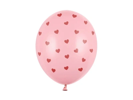 Balony różowe w czerwone serduszka 30cm 50 sztuk SB14P-278-081J-50x
