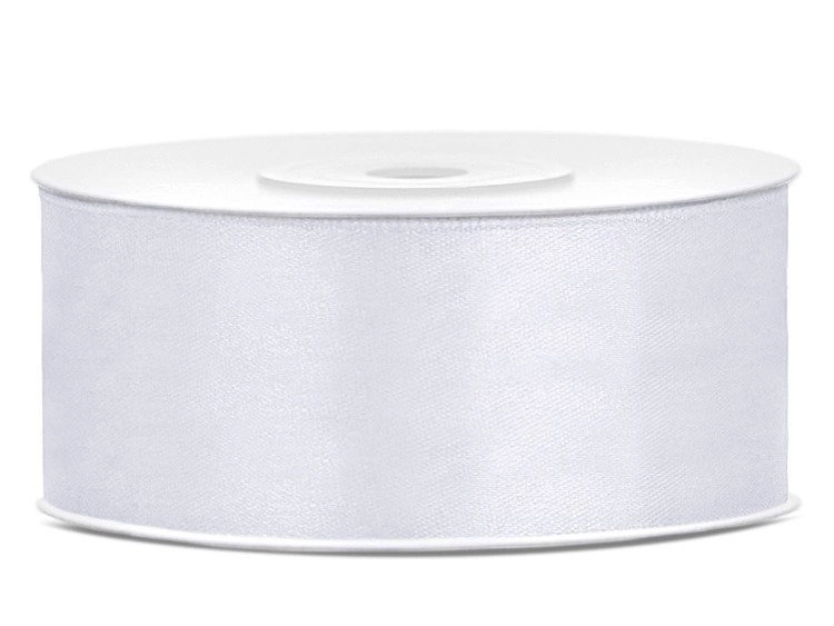 Tasiemka satynowa 25mm biała rolka 25m 1 sztuka TS25-008