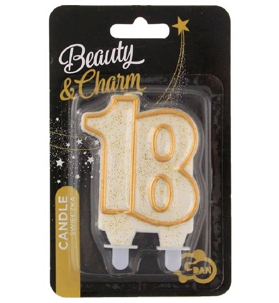 Świeczka urodzinowa 18, z brokatem.