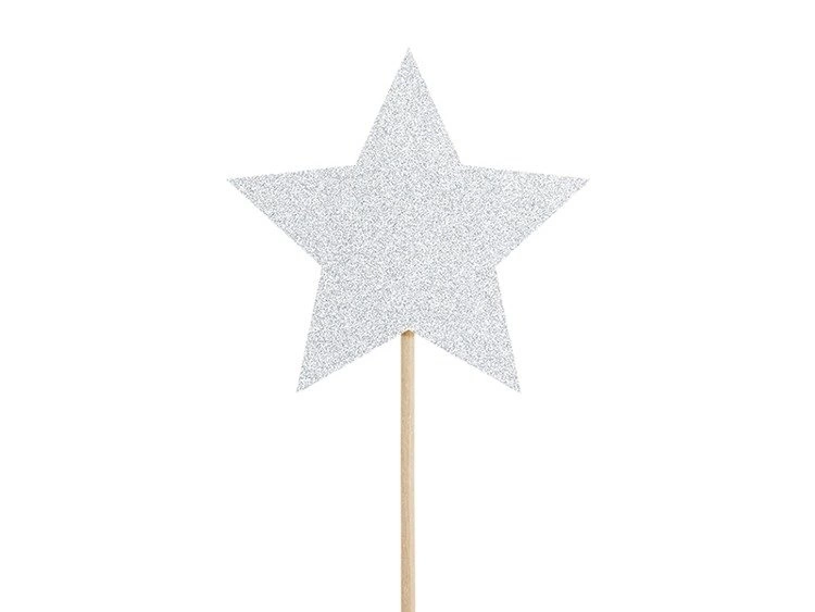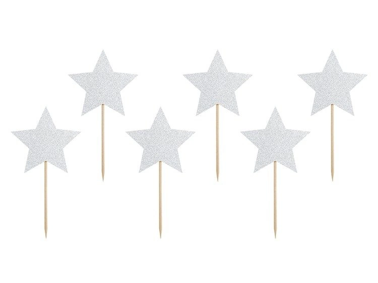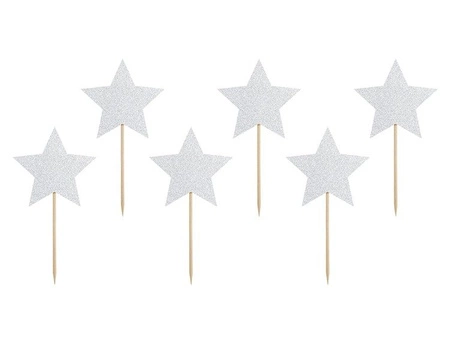 Dekoracje do babeczek muffinek Gwiazdki srebrne pikery 6 sztuk KPM19-018B