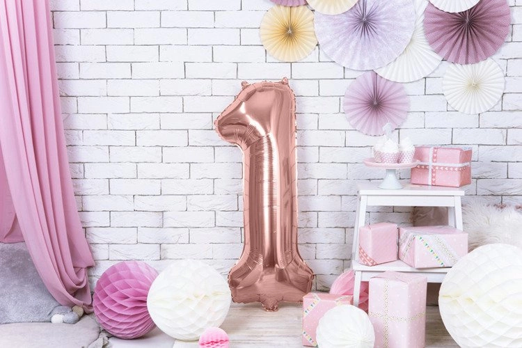 Balon foliowy cyferka 1, kolor różowe złoto.