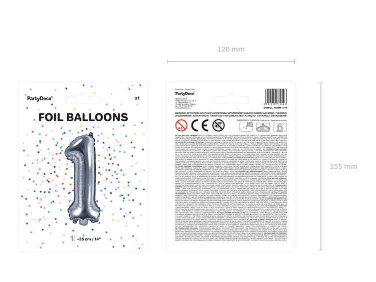 Balon foliowy 1 srebrny cyfra 35cm 1 sztuka FB10M-1-018