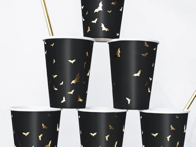 Kubeczki papierowe na Halloween złote Nietoperze 220ml 6 sztuk KPP20-EU1