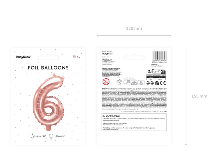 Balon foliowy 6 różowe złoto rose gold 35cm 1 sztuka FB10M-6-019R