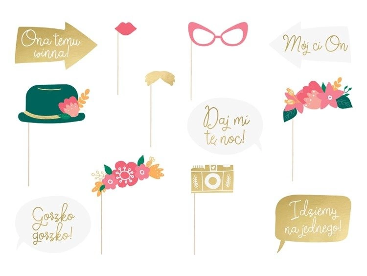 Rekwizyty do zdjęć na wesele ślub sesję ślubną gadżety 12 sztuk KNP31