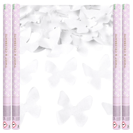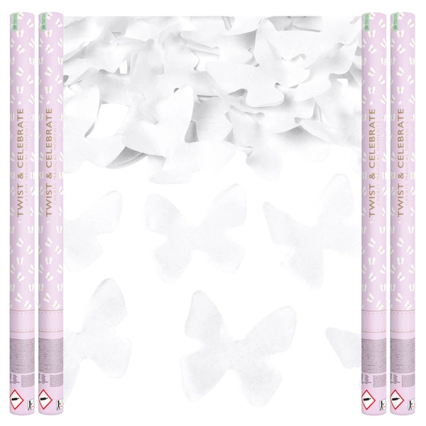 Tuby strzelające konfetti motylki białe wesele ślub sesja 80cm 4 sztuki TUKBT80-4x