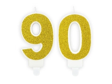 Świeczki na tort 90 urodziny złote brokat 7cm SCU3-90-019B