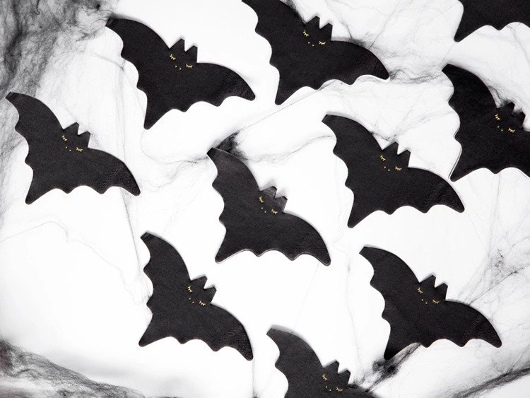 Serwetki papierowe Nietoperz w kolorze czarnym ze złotym metalizowanym nadrukiem.