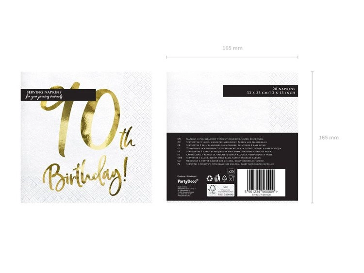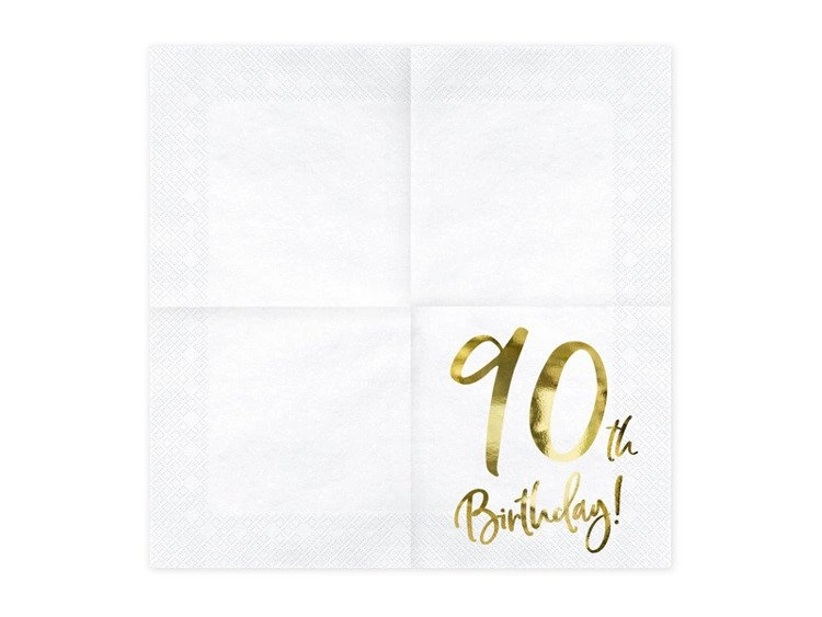 Serwetki na 90 urodziny w kolorze białym ze złotym nadrukiem 90th Birthday.