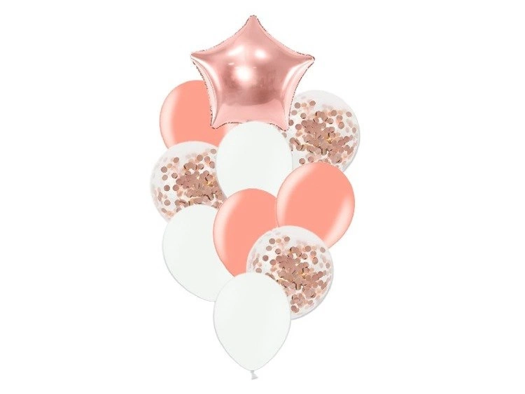 - 6 balonów z konfetti w kolorze rose gold, rozmiar 30 cm, model BAL67.