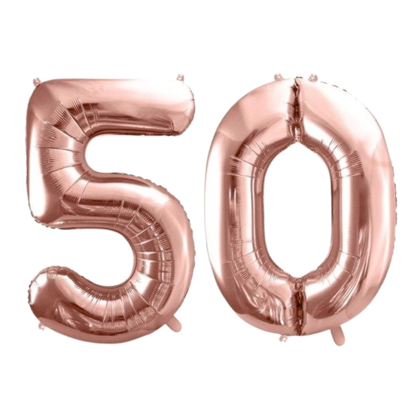 Balony na 50 urodziny różowe złoto zestaw słupki girlanda 22 sztuki A17