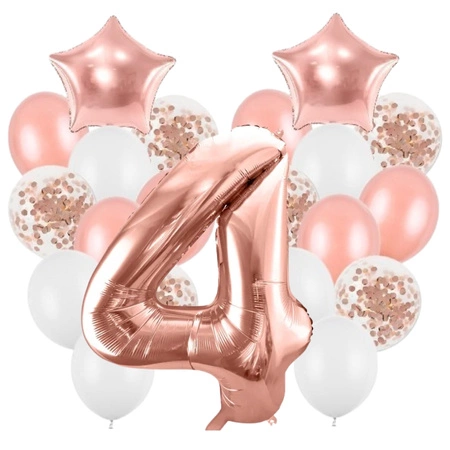 Balony na 4 urodziny różowe złoto zestaw 21 sztuk A24